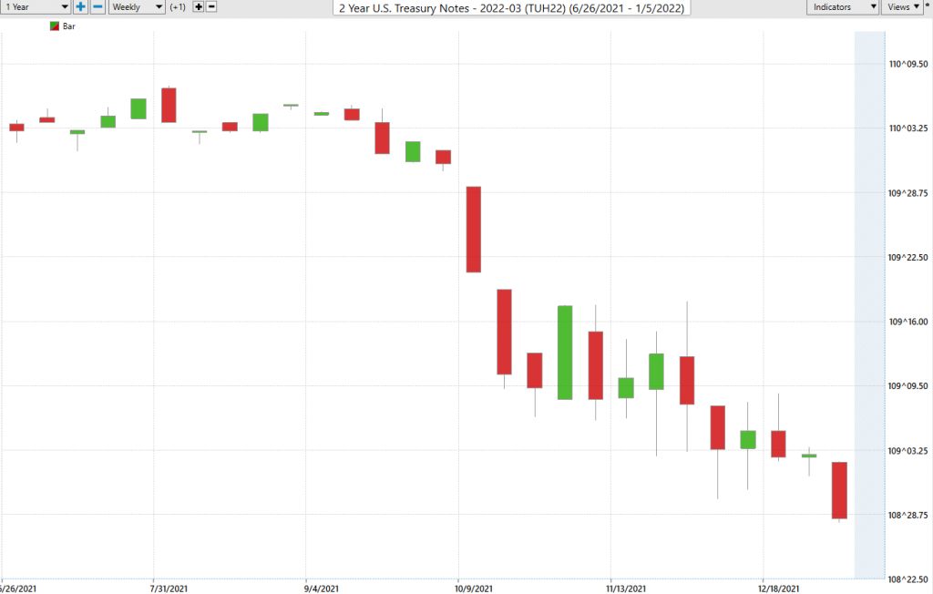 The first is the annual weekly chart 2-year U.S. Treasury Note.