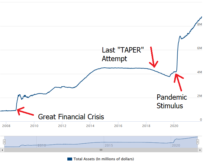 The most ironic part of this announcement was that the Fed said it would end its tapering in March while continuing to make bond purchases in January 2022.