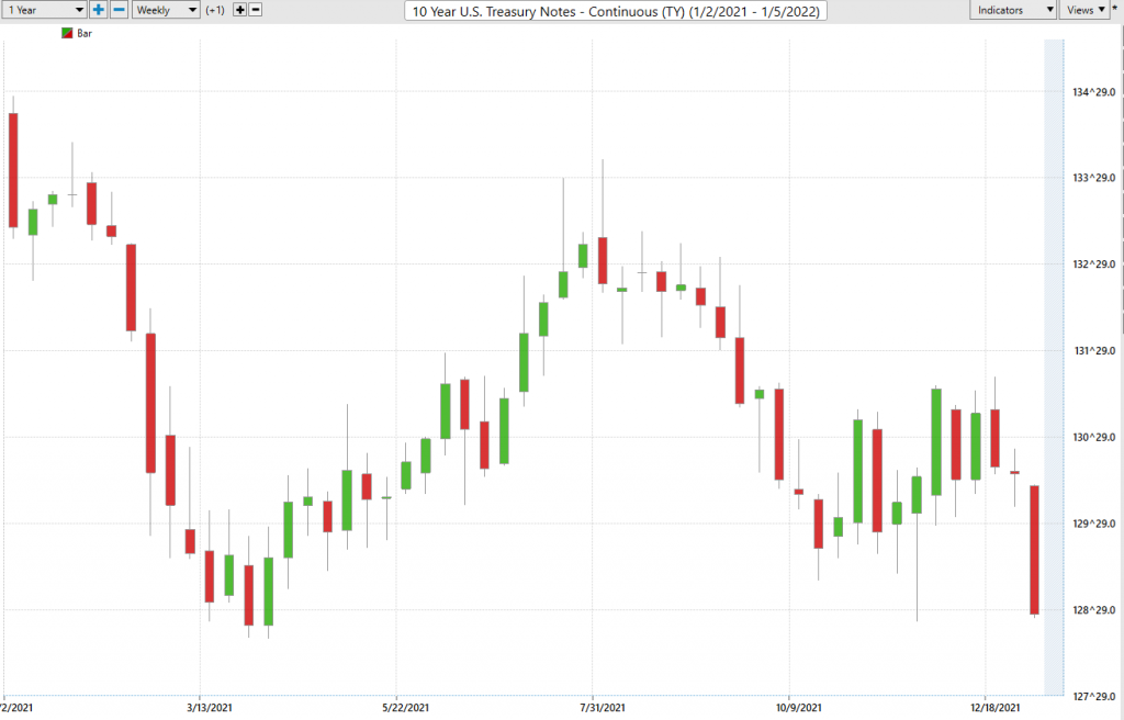 Observe how this weekly chart of the 2021 price action on 10-year U.S. Notes, has not made a new “lower low” yet.