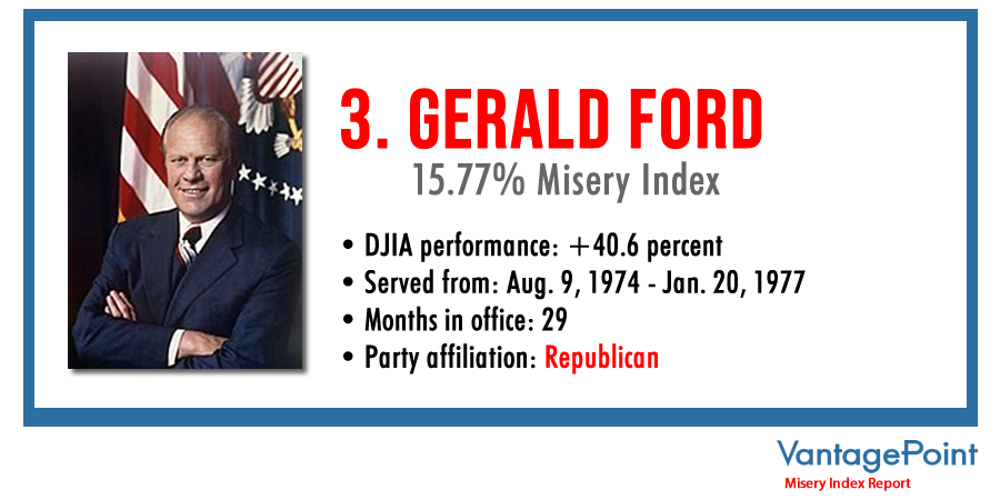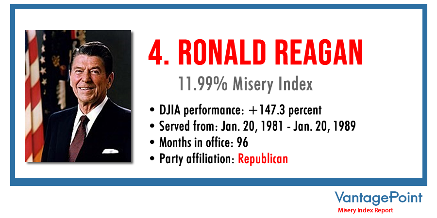 In the 1976 presidential election, candidate Jimmy Carter used the Misery Index of 12.6% against President Gerald Ford and won the Presidency. Four years later candidate Ronald Reagan used the Misery Index of 19.7%, against President Carter to defeat the Carter and win the Presidency for the Republican party.