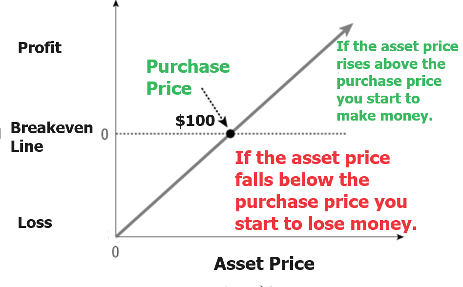 This means that a stock purchase would require a buyer to allocate $10,000 to purchase 100 shares of stock. The risk/reward profile is very easy to understand. The key point for this scenario is that a buyer of stock has a very straightforward linear relationship with the asset. In many instances they can potentially purchase on margin which increases leverage and risk.
