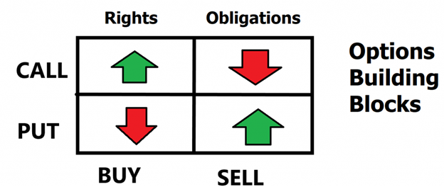 The following graphic clearly illustrates the differences between purchasing a right on a stock, versus creating an obligation.