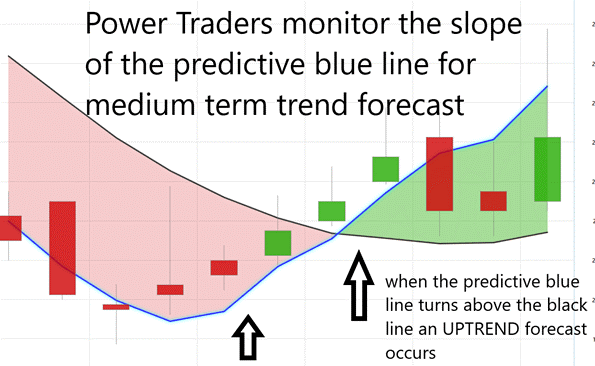 Power traders use the predictive blue line in helping to determine both the value zone as well as the trend direction. Ideally, traders use the predictive blue line as the ideal value zone to sell against in a down market.