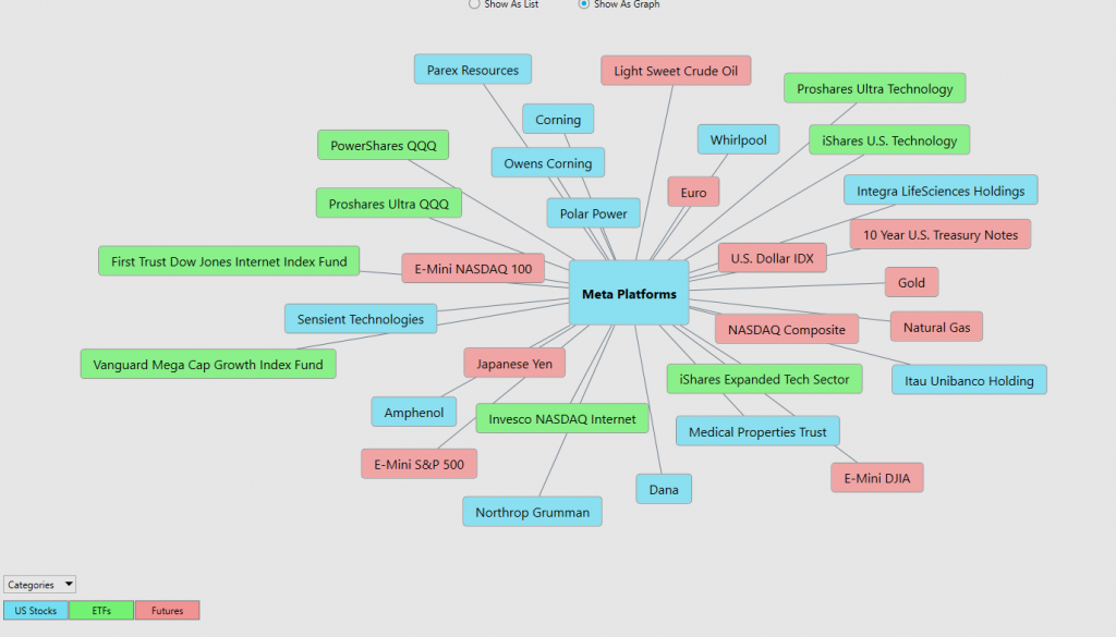 What makes the Vantagepoint Software truly unique is its ability to perform Intermarket analysis and to locate those assets which are most interconnected that are responsible for driving the price of $FB higher or lower.