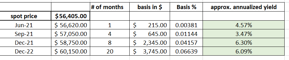 Keep in mind, headlines come out every hour designed to capture trader’s attention. But what genuinely drives price action is arbitrageurs committing capital to markets in pursuit of yields where they can eliminate risk. When these opportunities exist, they become the key price driver for a market. In the beginning of 2021, bitcoin was advertising risk free arbitrage yields of 20% annualized. Stop and think about that! Is it possible that yield was responsible for the volatility we have seen in the top cryptocurrency so far this year? If you were a bitcoin whale and had millions or billions of dollars of bitcoin in your possession would that yield entice you to go sell the distant futures contracts against your position to lock in the basis?