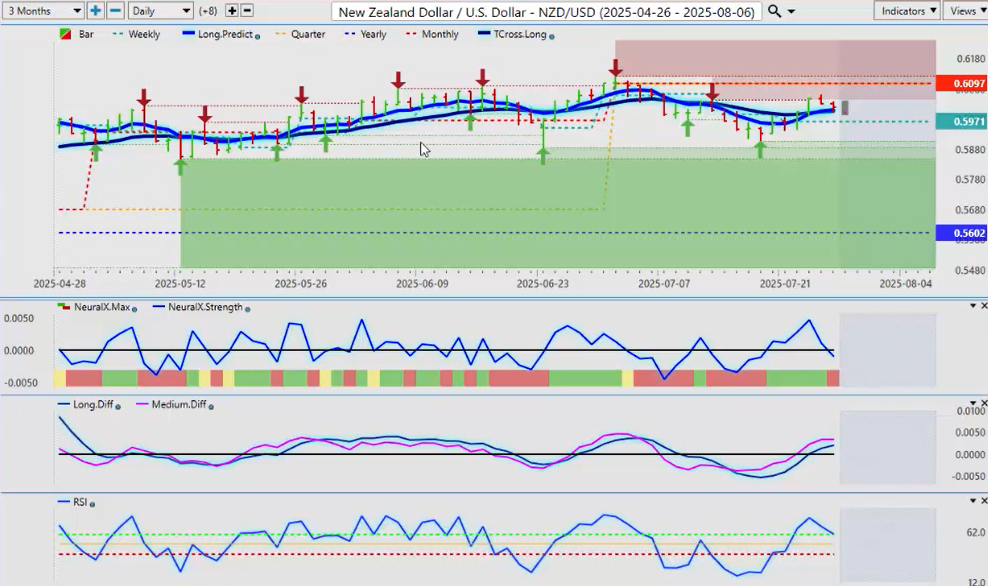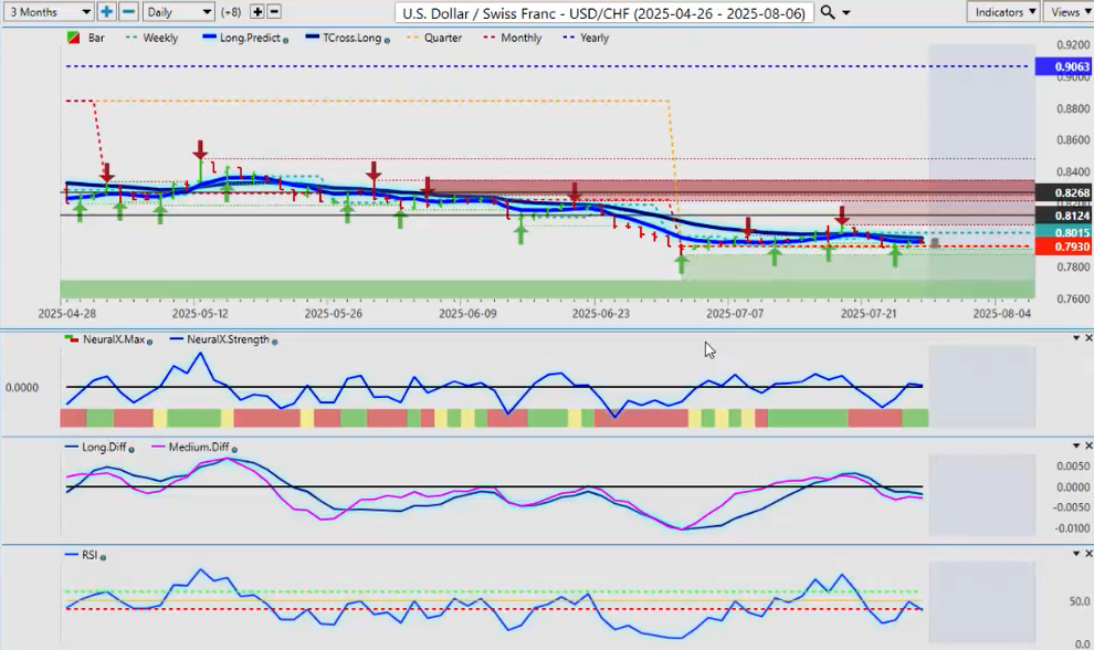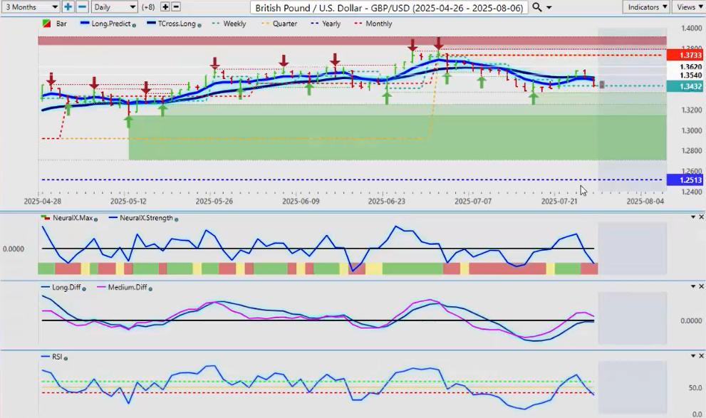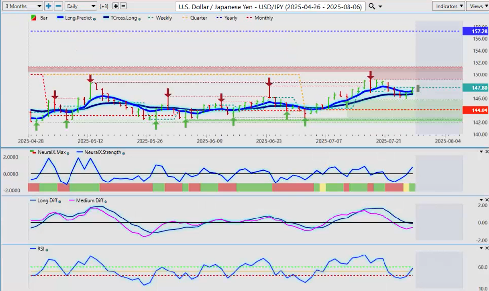 But we are bearish on the year — 1.5728 — but on the quarter, the dollar is doing pretty decent against the yen. And always remember: this is a carry trade. So the position of the predicted RSI, the Neural Index Strength — saying there is some upside potential here. And again, if you’re going long, make sure your stops are below 1.4404 or wherever — and again, you can always lower your position size and scale in.